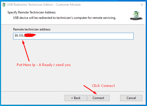 Put Here Remote Ip and click Connect